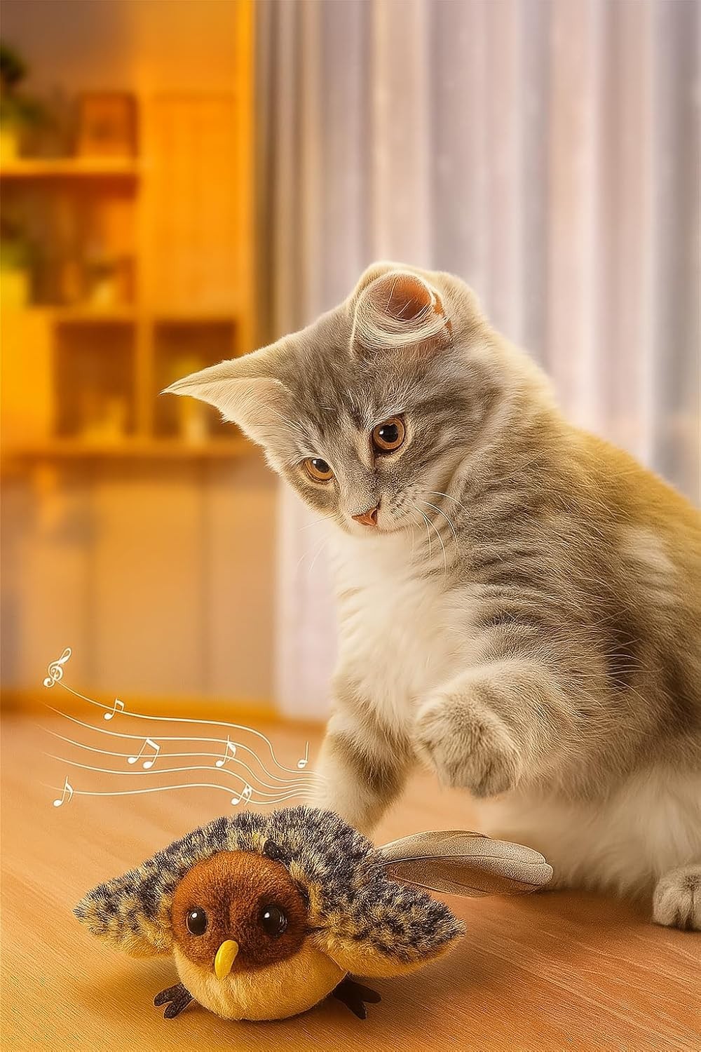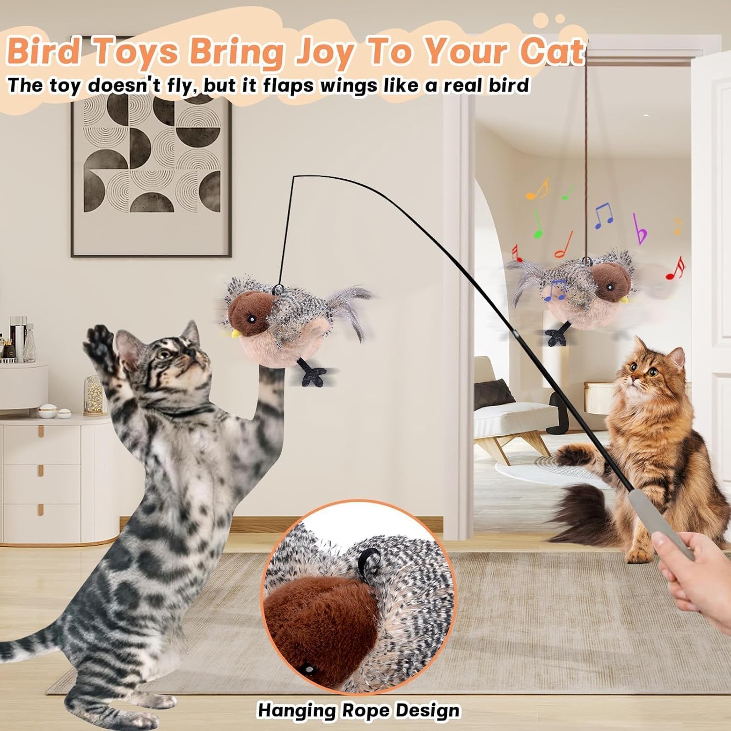 • Realistic bird sounds and flapping wings instantly grab your cat’s attention and awaken their natural hunting instincts.