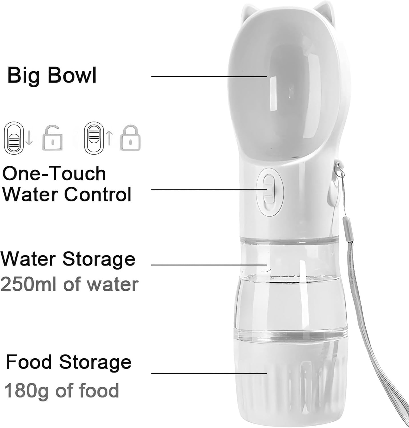 Ensure your furry friend stays hydrated and nourished wherever you go with our innovative all-in-one dog travel bottle. Designed to hold 250ml of water and 200ml of food, this compact and portable solution is perfect for walking, hiking, road trips, or any outdoor adventure. Unlike traditional pet bottles, this smart design integrates both water and food storage in one sleek unit.